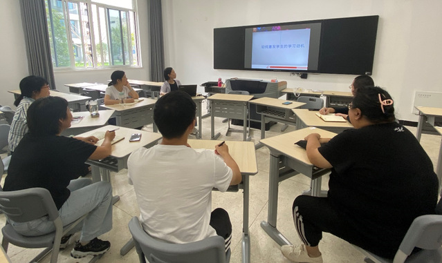 封老师首先分析了高职学生具有不爱学习、自控力差、爱玩电子游戏、学习习惯不好等主要问题,要激发学生的学习动机应该引导和帮助高职大学生树立远大理想,确定合理的学习目标,保持稳定的学习动力。可以通过巧设学习情境,激发兴趣;通过实践培养小组合作意识;设计趣味性和开放性的练习;设计适合学生特点的游戏活动等手段来激发学生的学习动机。吴老师认为教师和学生是教育活动基本要素,学生具有主观能动性,教师必须以调动学习主动性和积极性为出发点,使之具有充分内部和外部学习动机,主动并善于学习。激发学生的内在动机,老师可以创设真实的问题情境,激发引出求知欲好奇心;设定学习和成就目标,体验成功感并自我强化;准确分析学业成败归因,提高学习积极性自信心。激发学生的外部学习动机,老师要及时、清晰、具体的反馈学习结果信息;表扬鼓励与批评指责的正确运用;开展竞赛,提高学习积极性等方面入手。在教学过程中,教师要挖掘教材趣味素材,设置问题情境,撩拨学生好奇和探求新知识之心,使学生处于愤悱状态,激发学生渴求知识的浓厚兴趣;要建立朋友式的师生关系,增进师生情感,充分发挥师生教与学的主观能动性以及主导和主体作用,积极参与课堂教学,引导学生在有限的单元教学时间里始终兴致盎然,不断提高教学质量。