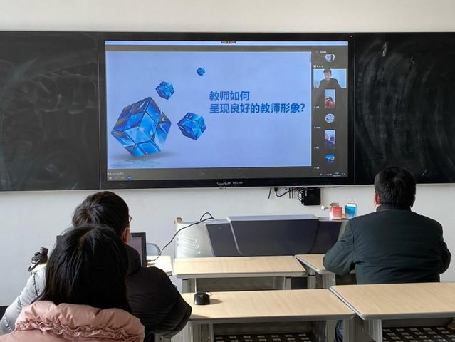 接下来,谢兵老师分别从教师的视觉和听觉形象两个方面为大家详细的介绍了教师在授课过程中和平时与学生沟通交流的过程中如何保证良好的教师形象,对学生产生积极的影响。教研室的老师们也通过腾讯会议开展了线上与线下同步交流,老师们分享了自己在如何管理自己的形象特别是听觉形象上发表了自己的看法。