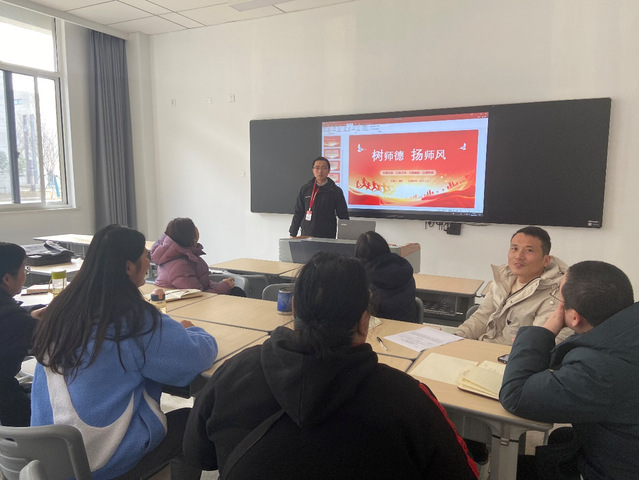 教研会上,吴老师从新时代下的师德师风、新时代高校教师职业行为十项准则、违反师德师风的典型案例、做“四有”好老师、当育人大先生四个方面进行了交流汇报,新时代高校教师要做到坚定政治方向、自觉爱国守法、传播优秀文化、潜心教书育人、关心爱护学生、坚持言行雅正、遵守学术规范、秉持公平诚信、坚守廉洁自律、积极奉献社会,做到有理想信念、做学生锤炼品格的引路人,有道德情操、做学生学习知识的引路人,有扎实学识、做学生创新思维的引路人,有仁爱之心、做学生奉献祖国的引路人,做好师德八条:师心慈,爱护学生、诲人不倦;师仪端,仪表端正、言谈文明;师风正,谦虚谨慎、团结互助;师志坚,致力教育,勇于献身;师学勤,勤奋学习、力求上进;师业精,业务熟练、指导有方;师纪严,纪律严明、遵纪守法;师德育,作风正派、道德高尚。