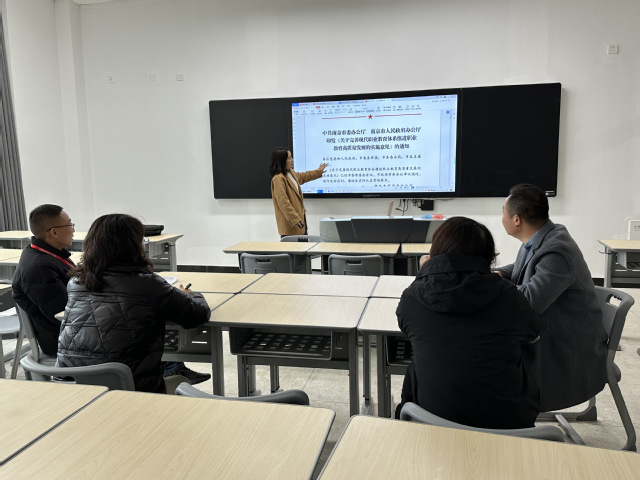 职业教育是国民教育体系和人力资源开发的重要组成部分,肩负着培养多样化人才、传承技术技能、促进就业创业的重要职责。在全面建设社会主义现代化国家新征程中,职业教育前途广阔、大有可为。为贯彻落实全国职业教育大会精神,推动现代职业教育高质量发展,中共南京市委办公厅、南京市人民政府办公厅印发的《关于完善现代职业教育体系推进职业教育高质量发展的实施意见》。2023年3月21日下午,机械设计与制造教研室全体教师思学楼110教室认真学习了文件精神,本次会议由教研室主任孙菁老师主持。
