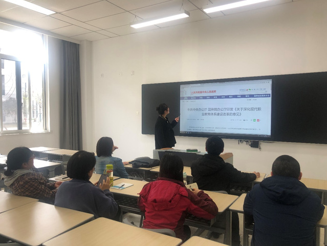 教研会上,蔡老师带大家学习了中共中央办公厅、国务院办公厅印发《关于深化现代职业教育体系建设改革的意见》(以下简称《意见》),《意见》指出,坚持和加强党对职业教育工作的全面领导,把推动现代职业教育高质量发展摆在更加突出的位置,坚持服务学生全面发展和经济社会发展,以提升职业学校关键能力为基础,以深化产教融合为重点,以推动职普融通为关键,以科教融汇为新方向,充分调动各方面积极性,统筹职业教育、高等教育、继续教育协同创新,有序有效推进现代职业教育体系建设改革,切实提高职业教育的质量、适应性和吸引力,培养更多高素质技术技能人才、能工巧匠、大国工匠,为加快建设教育强国、科技强国、人才强国奠定坚实基础。