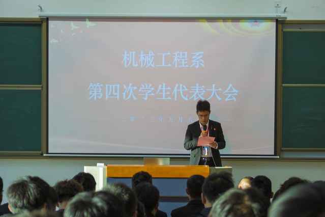 2023年5月8日下午5点30分,开元机械工程系第四届学生代表大会在善学楼101顺利召开。出席本次大会的有机械工程系主任毛奇、党支部书记李杰、团总支书记吴婧佳、学生会指导老师顾航、全体辅导员老师及104名学生代表。大会由机械工程系学生会主席韩田源主持。