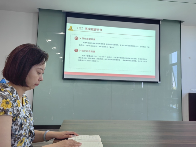 2023年6月27日,机械工程系全体党员在育德楼303集中学习《开元关于加强党员干部“八小时外”监督管理实施办法(试行)》,党支部副书记李杰领读学习该文件精神。