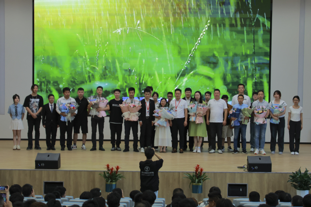 会议伊始,无名乐队登台利用电吉他和架子鼓演奏出欢快带感的音乐,歌声承载梦想,充分调动了分会场的气氛。一曲歌闭,典礼正式开始。2023届优秀毕业生茅旭升作为优秀学生代表上台发言,他总结了三年来所得,作为学生代表深切表达了机械工程系2023届学生对系部的热爱与感激之情,并真诚祝愿系部蒸蒸日上,再谱华章,全体老师安康顺意,桃李芬芳,所有毕业生此去一帆风顺,轻装策马青云路。优秀辅导员代表顾航老师在讲话中表达对机械工程系2023届毕业生们顺利完成学业表示热烈的祝贺和美好的祝福。人生的道路上总是有平川、激流和险滩,他希望广大毕业生们要主动将个人的梦想融入于国家和民族之梦,敢于克服成长中的各种困难,勇于承受命运中的各种挫折,善于应对发展中的各种变局和挑战,坚持在追求中不断成长,在奋进中踏上人生升华的新台阶,实现美丽人生和精彩前程的统一,成就最精彩的自己!鲜花献恩师,桃李感恩情。机械工程系15个毕业班代表依次上台为毕业班带班教师献上鲜花,鲜花虽无言,情意却缱绻。最后孔院为毕业生颁发毕业证书,祝贺全体毕业生顺利毕业,走入社会,开启人生新篇章。