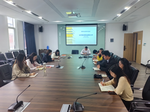 为进一步提高我系辅导员队伍专业化建设,切实提高辅导员队伍的业务能力和综合素质,5月8日上午,本学期第四期辅导员业务研讨会议在育德楼210举行。会议主题为:如何做好新生跟踪工作。本次会议由刘曼老师主讲。