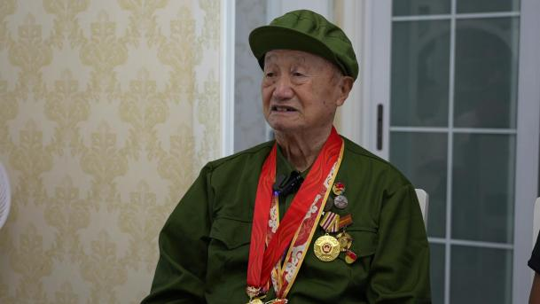 随后团队师生拜访了96岁的抗战老兵白建春老人,他1948年入伍,作为一名有着75年党龄的老党员,先后参加过淮海战役、渡江战役、抗美援朝等战役,退役后,为家乡经济社会发展作出了积极贡献。老人动情地讲述了渡江战役、抗美援朝等战役故事,和学生们共同追忆战火纷飞的峥嵘岁月。