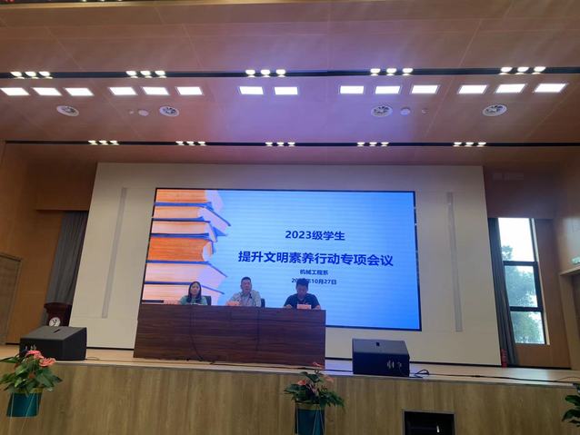 10月27日中午,机械工程系在乐学楼101召开2023级学生提升文明素养行动专项会议,机械工程系党支部副书记李杰、就业干事顾航、团总支书记吴婧佳、23级全体辅导员以及所带学生参加会议。本次会议由吴婧佳主持。