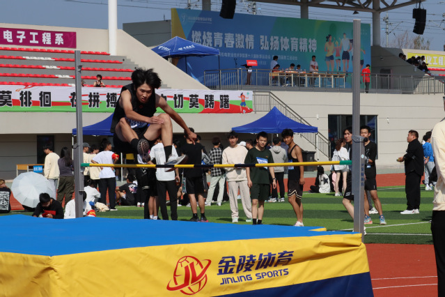 比赛正式开始后,整个赛场顿时沸腾起来,加油助威声此起彼伏,络绎不绝。田径赛场上,随着枪响,机械系健儿们如离弦之箭冲出起点,红色的跑道激情飞扬,身畔凉风习习,仍掩不住汗水滑落,运动场因他们而沸腾。信笃志坚的机械系学子们奋起争先,勇于冲刺,交出了一份份出色的答卷。田径赛场上也同样热烈,一次次地纵身,展现了力量与美。瞄准前方的尽力投掷,扔出的是铅球,超越的是自我。铅球从他们手中奋力抛出,在蔚蓝的空中划过一条优美的弧线,那是机械系学子们的理想在空中闪耀。跳高,是他们与天空接触交流的特殊方式,也是他们迈向梦想的步伐,而成功只是他们逐梦路上留下的每一个脚印。