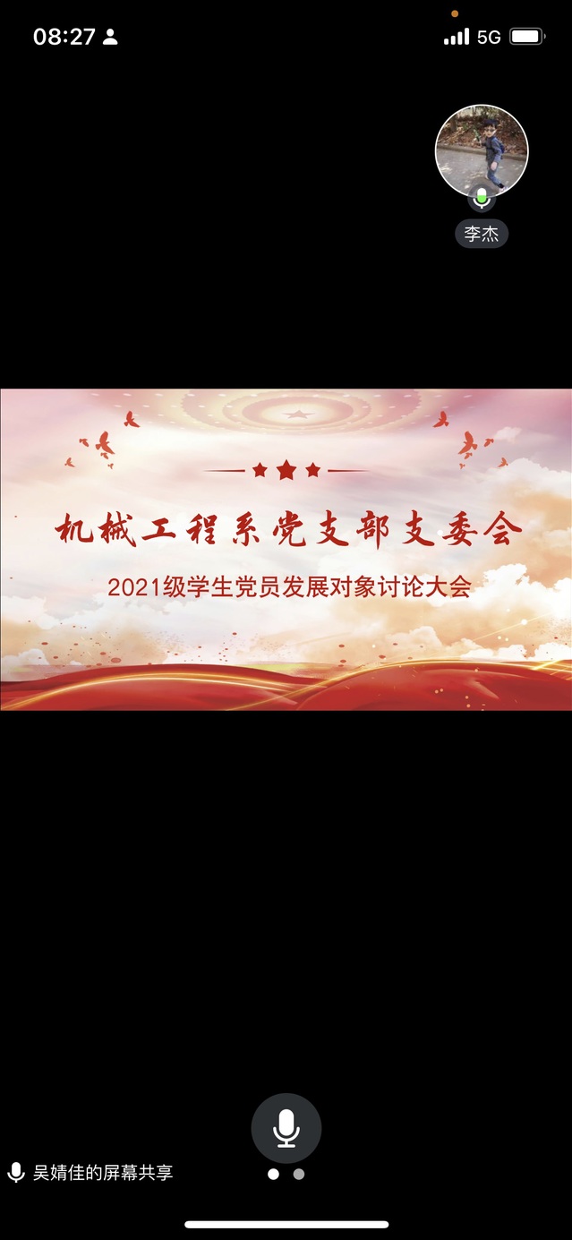 为进一步发挥党员先锋模范作用,确保发展党员质量,2023年12月16日上午,机械工程系党支部支委会召开了21级学生党员发展对象讨论会。本次会议由机械工程系党支部副书记李杰主持召开,全体支委参加。