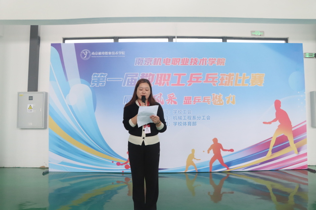 学校党委委员、纪委书记、工会主席姜振宇为本届乒乓球比赛开幕式致词,她表示,希望每位参赛教师都能发挥出自己的最佳水平,用球拍传递友谊,用比赛享受激情,并把比赛中所彰显的精神,转化为工作的不竭动力和豪迈激情。随后,裁判员代表李庆路宣读比赛规则。