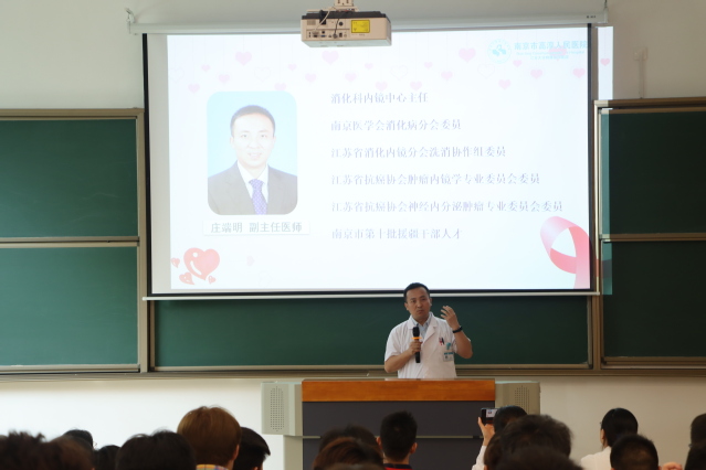首先,庄端明给大家讲授了幽门螺旋杆菌预防和消化道疾病的预防知识。随后,糖尿病学组杨小燕护士长讲解《青少年健康科普——糖尿病》,护理感染管理组刘三玉护士长讲解《校园防艾》,他们用生动的案例和通俗易懂的语言,向同学们解释这些疾病的预防和应对措施。