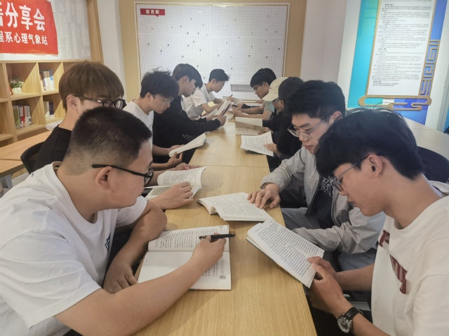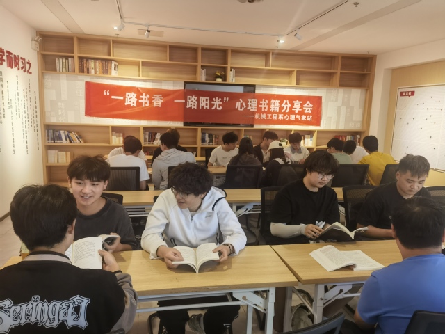 为深入实施关爱青少年生命健康“润心”行动,牢固树立并践行健康第一的教育理念,进一步提升我校学生心理健康教育和生命健康关爱工作水平,帮助学生真正理清心理健康与自身生活之间的平衡与关系,机械工程系心理气象站于2024年5月16日中午12点30分,在星梦馆二楼开放空间,举办了首届“一路书香,一路阳光”心理读书分享会,吸引了不少同学前来打卡。
