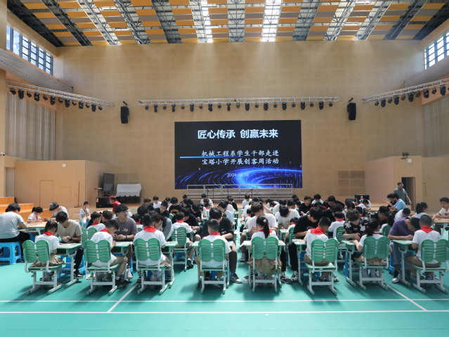 5月28日,机械工程系学生干部走进高淳区宝塔小学,在宝塔小学体育馆与小朋友们共同开展了一次别开生面的创客活动。这次活动不仅让大学生们有机会将自己的知识和技能传授给祖国的下一代,也让小学生们体验了动手实践的乐趣。