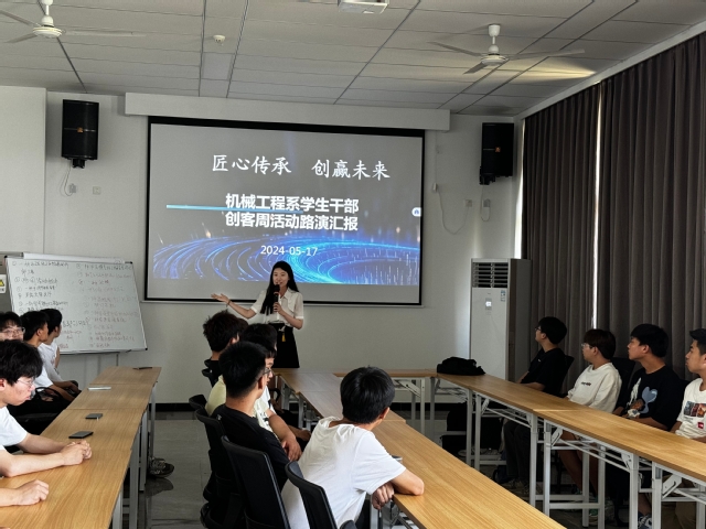 5月17日,机械工程系学生干部在笃行楼401会议室开展“匠心传承,创赢未来”创客周活动路演汇报,本次活动由系团委书记王晨歌主持。活动现场,学生干部们以团队形式制作了精美的ppt展示他们的项目。这些PPT展示不仅包含了详细的设计图和制作过程,还有对创意背后理念的深入解读。学生们的项目涵盖了从环保节能设备到智能机器人的各种创意,每一个都反映了他们对创客的深刻理解和对未来技术的洞察力。这次项目作品不仅展示了机械工程系学生干部的才华,也激励了更多的学生投身于科技创新。我们期待着看到这些年轻创客们将如何用他们的知识和创意为社会带来变革。