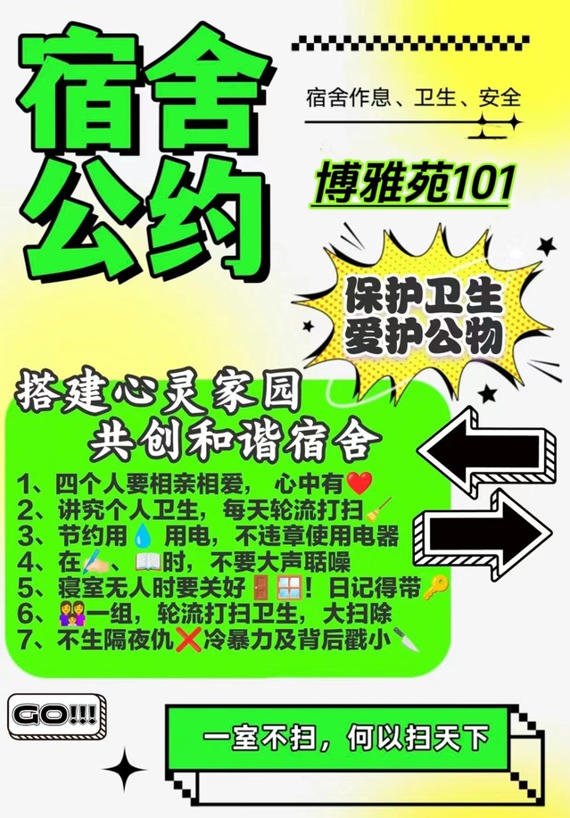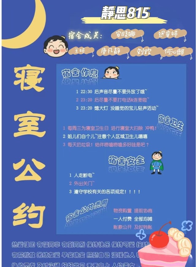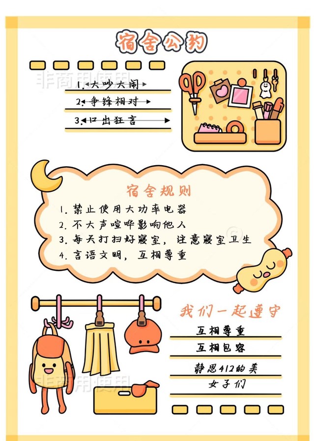 接下来让我们看一下大家的宿舍公约吧!