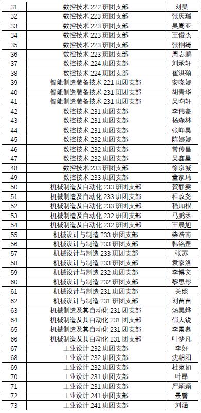 根据校团委《关于做好2024年度团员教育评议及团籍注册的通知》,机械工程系积极组织各团支部开展团员教育评议工作。经过各支部组织团员自评、民主评议、支委会议讨论,辅导员指导审核,系团委统计复核,现将2024年度团员教育评议“优秀”名单公示如下:
