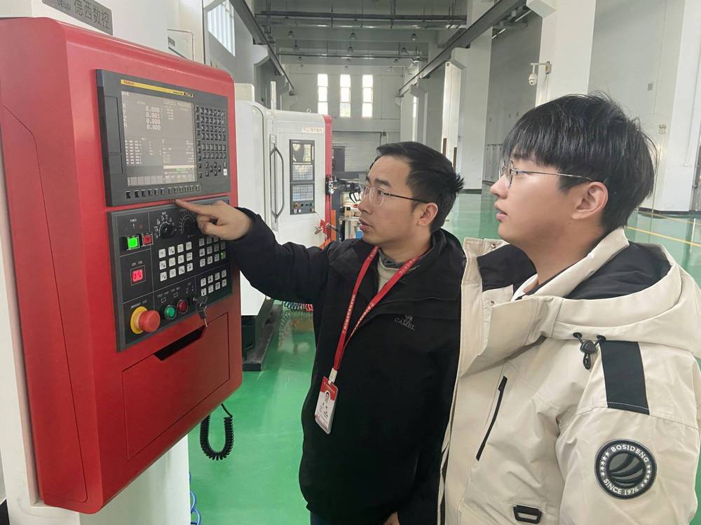 刚踏入大学的校门,张同学便深知自己没有高中学习背景,势必与其他同学有一定的差距。但他从未因此而气馁,相反,他更加珍惜每一次学习的机会。由于中专时期就已经获得了江苏省职业院校技能大赛三等奖,来到机械工程系他便怀揣着对数控技术的无限热爱,第一时间找到数控团队负责人吴彬老师,申请加入了学校的数控技术竞赛团队。在这里,他不仅遇到了志同道合的伙伴,更幸运地得到了吴彬老师和胡诗悦老师的悉心栽培。两位指导老师以其深厚的专业知识和丰富的实践经验,为张同学量身定制了训练计划,从基础操作到高级编程,每一步都倾注了老师的心血。