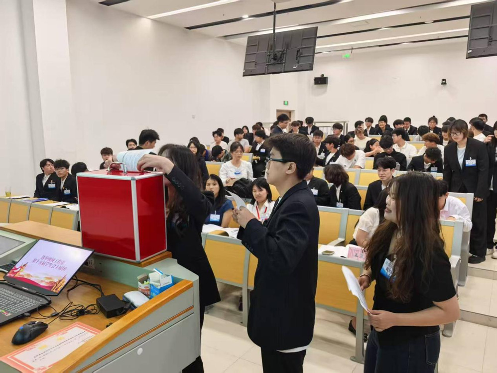 随后,大会步入投票选举阶段,现场秩序井然。代表们依次走上讲台进行投票,通过差额选举的方式,在6名候选人中孟浏、汪翔、陈文聪同学脱颖而出,成为开元机械工程系第十五届学生会主席团成员。