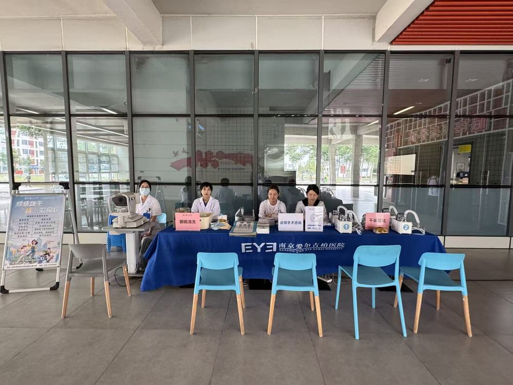 活动现场,南京爱尔古柏医院的专业医疗团队为师生带来全方位的眼科健康服务。义诊区域内,眼科医生们借助先进的检查设备,为师生们进行视力检测、眼底检查等多项眼科检查,耐心解答大家关于近视防控、眼部疾病预防等方面的疑问,并给予个性化的护眼建议。眼镜清洗服务点前,师生们有序排队,将自己的眼镜交给工作人员。专业的清洗设备配合细致的操作,让眼镜焕然一新。干眼雾化体验区更是备受欢迎,不少长期使用电子设备、眼睛容易疲劳干涩的师生,通过雾化治疗,缓解了眼部不适,直呼“眼睛清爽多了”。