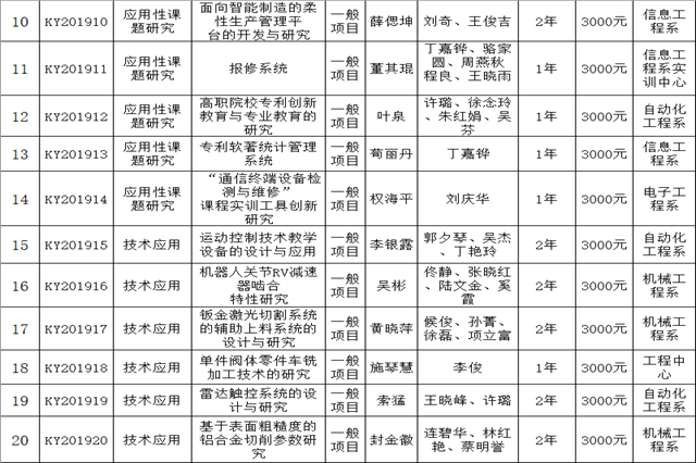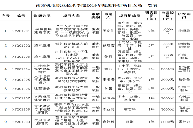 学院2019年度院级科研项目立项评审工作已经结束,共收到教师申报项目44项。经科研及校企合作处形式审查、校内专家小组个别评审、学院学术委员会评审小组会议答辩评审、学术委员会综合评审,现决定对44申报项目给予立项,其中重点项目3项、一般项目41项。现将立项评审结果进行公示,公示期5天(2020年1月11日至16日)。
