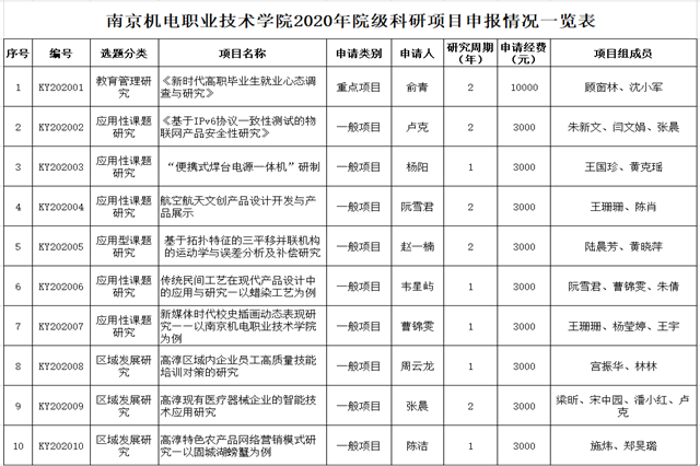 2020年度院级科研项目立项评审结果公示