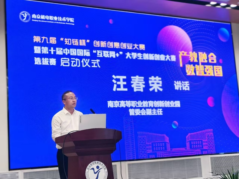 南京市高淳区科学技术协会副主席杨腊斌、江苏知链科技有限公司总经理施亚东,南京高等职业教育创新创业园管委会副主任汪春荣,学校党委书记、校长周庆礼,党委委员、副校长刁爱军,党委委员、副校长孔德丽,党委委员、纪委书记、工会主席姜振宇,各系部及职能处室负责人等领导出席启动仪式。300名师生代表参加本次活动。本次活动由科研及校企合作处教师朱洪霞主持。