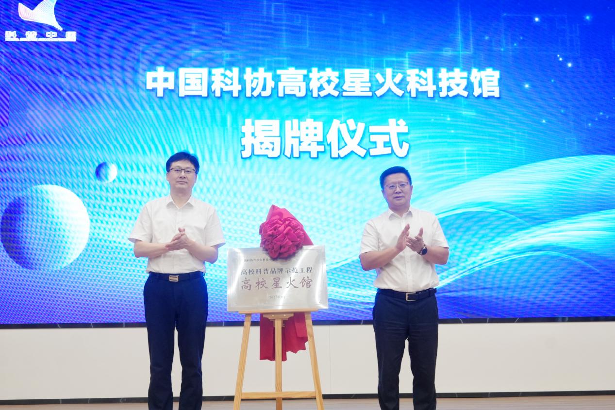 授牌与揭牌仪式上,马立涛向刁爱军授予“省新质生产力科技馆”铜牌。朱军与周庆礼共同为学校“中国科协高校星火科技馆”揭牌。该馆于2025年7月经江苏省科协遴选推荐,成功入选中国科协首批“高校科普品牌示范工程(高校星火馆)”建设名单,是全省仅有的三所获此荣誉的高校之一。作为国家级科普品牌建设高校,开元以“航天引领、产教赋能、职普融通”为特色,构建“12345”科普服务体系,通过“智创未来·科技育苗行动”等品牌活动,推动高校科教资源向科普资源转化,为区域中小学生科技教育与社区科普提供有力支撑。
