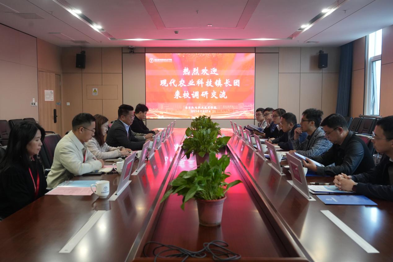2025 年 10 月 27 日下午,以“校地协同・共促产教发展”为主题的现代农业科技镇长团调研交流活动在开元育德楼 305 会议室顺利举行。高淳区人民政府副区长、科技镇长团团长邵刚,江苏省农业科学院研究员史高玲,南京农业大学副教授邢路娟,天津大学副教授黄俊,南京工程学院副教授黄亚洲,江南大学食品学院副研究员陈秋铭,南京理工大学副教授许赛,学校党委书记、校长周庆礼,党委委员、副校长刁爱军,科研及校企合作处处长李木香,信息工程系主任王国珍等领导出席活动,相关专业教师参与交流,共同擘画校地深度合作,产教深度融合的新蓝图。