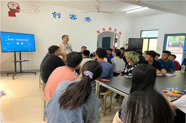 新学期,新气象。9月17日,第四期“双创教育试点班”(简称“双创班”)2020-2021第一学期第一次班会在蓝岛创客空间204教室举行。班主任黄克瑶、创客导师杨阳以及第三期“双创教育试点班”全体成员参加了本次班会。