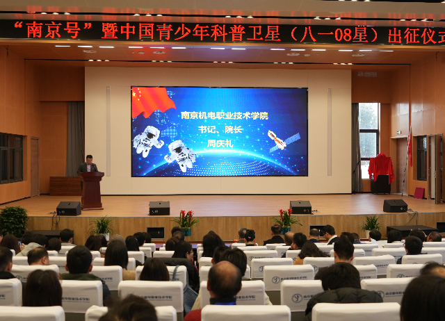 2024年1月12日,“南京号”暨中国青少年科普卫星(八一08星) 出征仪式在开元举行。南京市教育局领导、南京市各职业院校领导、开元领导、南京市各载荷搭载单位领导、南京市各合作院校及企业领导出席会议。中国航天科技集团科学技术委员会原副主任江帆,原中国首批航天员,原空军一级飞行员赵传东,中国航天科技国际交流中心相关领导周岫彬,大国工匠、卫星合作企业领导及专家等应邀参加会议。开元副校长刁爱军主持会议。