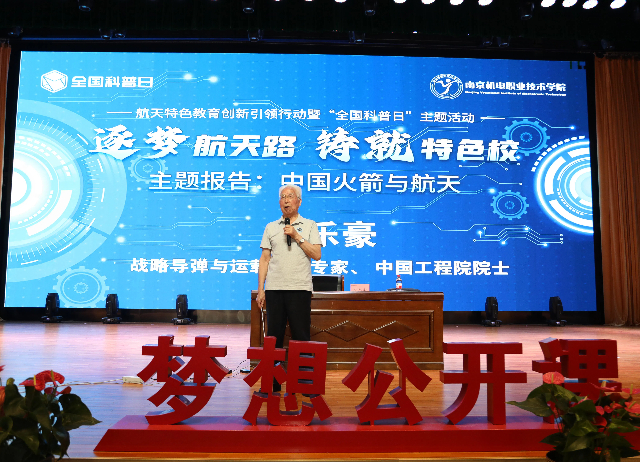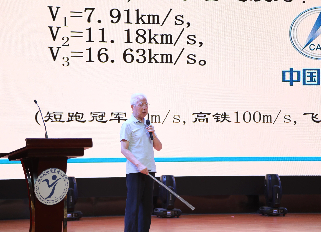 随后,龙乐豪的《中国火箭与航天》主题讲座正式开始。作为中国第一代航天人的龙乐豪以其深邃的航天情怀,从概述、长征火箭发展历程与成就、我国航天重大工程与展望、成就我国航天事业的原因和结论五个部分引领着众人踏入了《中国火箭与航天》的宏伟篇章。他不仅细致梳理了我国运载火箭技术从无到有、由弱变强的壮丽征程,介绍了国际商业卫星发射、太空育种、构建气象卫星系统、构建“北斗”卫星导航系统、开展无人月球探测、中国空间站建造、深空探测等我国航天重大工程的进展和规划,还深情回顾了航天工程领域所取得的累累硕果与辉煌里程碑。他运用一系列鲜活的故事与精准的数据,如同星辰般璀璨地照亮了听众的心田,让大家深切体会到中国航天事业正以破竹之势,跨越一个又一个技术高峰,展现出前所未有的蓬勃生机与无限潜能。在龙乐豪的寄语中,他勉励了我校师生树立理想,勤奋学习,强健体魄,为梦想砥砺前行。讲座的最后融入了现场互动环节,师生们积极提问,热烈讨论,龙乐豪深入浅出地回答大家的问题,不仅加深了师生们对航天科技前沿动态的理解,更激发了大家对航天梦想的无限向往与追求。