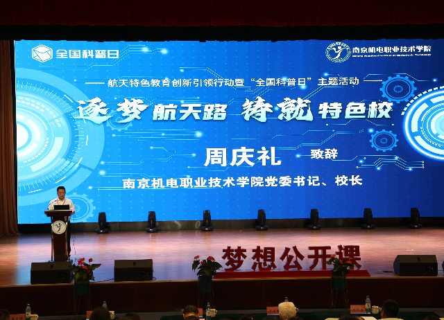 接着,周庆礼对各位嘉宾及师生的到来表示热烈的欢迎!中国火箭与航天事业,是中华民族伟大复兴征程中的壮丽篇章。近年来,开元紧跟航天产业发展人才需求,结合学校专业优势,率先开设“卫星通信与导航技术”等专业,率先建设卫星地面接收站和测控中心,积极培养航天领域技术技能人才。2024年1月17日,由我校牵头研制的全国职业院校第一颗科普卫星“南京号暨中国青少年科普卫星八一08星”搭载天舟七号货运飞船发射成功。本次诚邀龙院士在我校举办《中国火箭与航天》讲座,学校希望通过本次讲座让更多的同学了解航天、热爱航天,为我国航天事业的发展注入新的活力。