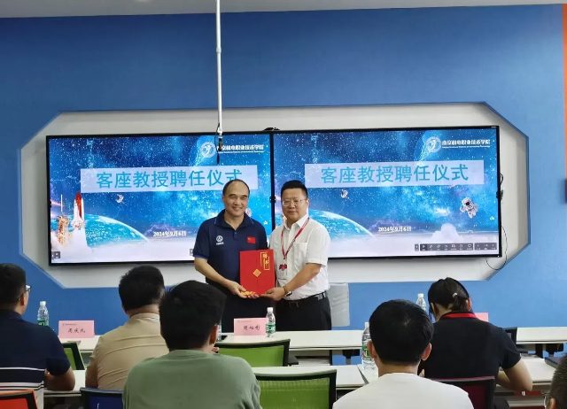 活动的最后,周庆礼陪同龙乐豪等嘉宾参观了学校的航天教育科普基地和卫星地面接收站,并在航天教育科普基地参加了卫星测控中心的揭牌仪式。龙乐豪与学校卫星专业的学生进行了面对面的交流。他对学生们寄予厚望,期盼着有朝一日,学校的杰出青年能够跨越重重挑战,踏入中国航天这一辉煌殿堂的大门。他希望这些学生在未来能够为中国航天事业的宏伟蓝图添上浓墨重彩的一笔,让这份荣耀与辉煌因他们的贡献而更加璀璨夺目。