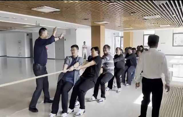 支部为取得好成绩,特意聘请具有拔河经验的机械工程系教师李明龙对拔河队员进行拔河训练指导,分别在20日、24日进行了培训。参加训练的同志服从支部安排,提前完成手中工作,精神抖擞地投入到训练中。通过练习,队员掌握了拔河基本要领。他们摆直比赛绳索,面朝对方,队形由高到矮,队员双腿一肩宽站开,双手拉紧绳索,身体重心向后倾倒,在号令员的指挥下,训练队员们个个瞪大眼,咬着牙、咧着嘴,双手紧握绳索铆足了劲向自己方向拉。在大家齐心协力下,经过三个回合,终于战胜陪练的学生对手,赢得胜利。