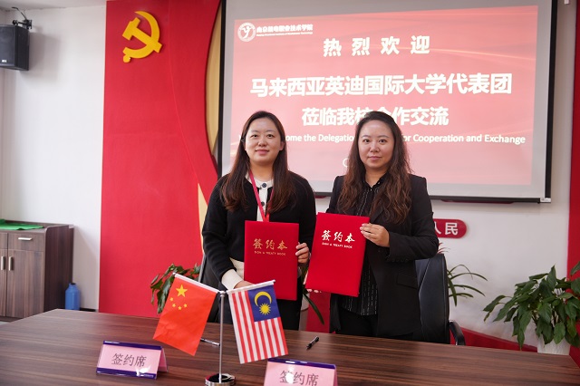 随后,我校与马来西亚英迪国际大学签署了合作协议,双方就具体的合作专业、人才培养模式、教学标准及教学资源建设进行了深入的交流,并围绕“在校师生的学历提升与短期交流游学研学项目”进行了具体洽谈。
