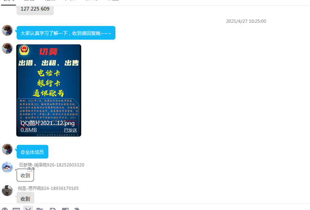 为广泛宣传防范通讯网络诈骗,提高校园师生对通讯网络诈骗手法的识别和防范能力,学院保卫处为每一位同学印发了“防范通讯网络诈骗承诺书”,为同学开展了一场防范通讯网络诈骗知识的宣传教育活动。 在同学们学习防范通讯网络诈骗知识的同时,在班级群里也宣传了正能量,同学们积极的转发宣传册,重视防范通讯网络诈骗活动的意义。 通过此次活动的宣传,让同学们充分认识到防范通讯网络诈骗严重危害性,熟知了比如不向任何人提供“手机验证码”、不核实身份不向任何人转账及汇款等常见的诈骗犯罪手段。针对陌生电话、短信,千万不要贪图小利,要与家人多核实、沟通,必要时拨打公安机关110报警请求帮助。
