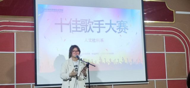 2021年5月11日晚上六点半,为进一步推进学院文艺活动的蓬勃发展,丰富校园文化的活跃氛围,给同学们一个展示自我风采和勇气的舞台,人文社科系举办了以“用音乐展现梦想,用旋律谱写青春”为主题的十佳歌手大赛。