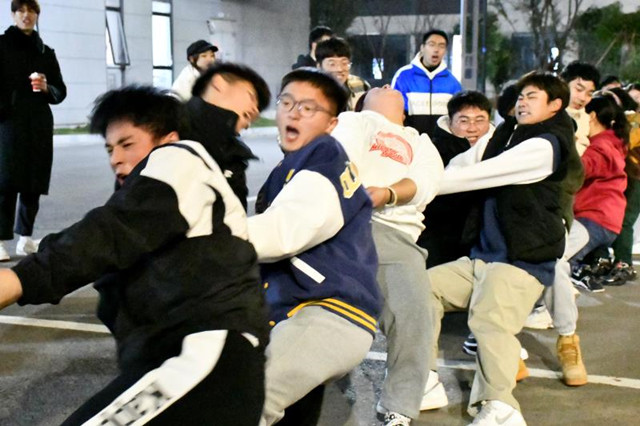 为了丰富学生的课余生活,增强学生的凝聚力,培养学生的团队合作能力,人文社科系学生会于2021年11月4日下午在广场举行“拔河比赛”。