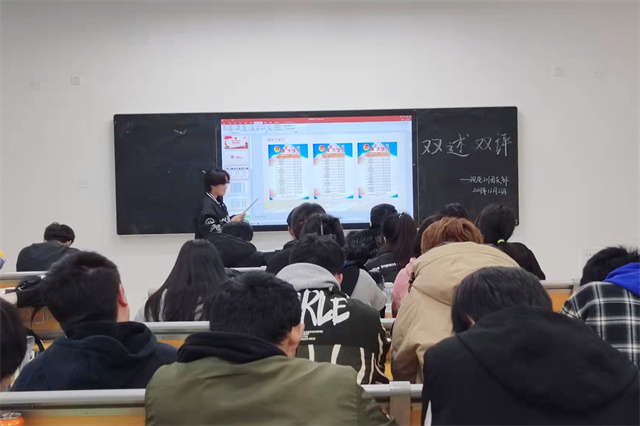 在人文社科系团总支书记杨军老师和各团支部团建指导员(辅导员)的带领下,各团支部书记认真阅读文件,深刻领会文件精神,制定清单,开展检查,撰写述职报告。在双述双评会议现场,各班级团支部书记在班级团支部团建指导员(辅导员)指导下,采用PPT汇报的方式,围绕学习习近平总书记系列重要讲话精神,结合十九届六中全会精神和任职以来履职尽责情况进行述学述职,分享了自己担任团支部书记职务以来的收获与体会,并对本学期任职期间的工作情况进行总结汇报,对未来工作提出了展望与规划。全体团员采取“面对面点评,背靠背评议”的形式,对团支书工作满意度进行投票,各团支部团建指导员对团支部书记的述职报告进行了点评。