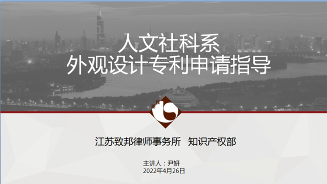 本次讲座上,江苏致邦律师事务所尹妍老师和南京众联专利代理有限公司蒋昱老师分别围绕外观设计专利申请指导和专利撰写及案例分析角度进行细致讲解。其中,尹妍老师结合视觉传达设计、环境艺术设计和数字媒体技术等专业角度,从“人文社科系主要申请的专利类型”、“什么样的方案可以申请外观设计”、“怎样提供外观设计的交底文件”、以及“外观设计申请的注意事项”这四个方面,并结合诸多成功和失败案例,由浅入深为全体师生详细指导了看似简单的一件外观设计专利从交底、到改图、到审查及最终授权的过程和技巧方法。