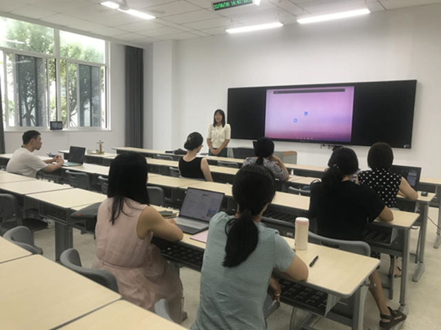8月30日下午,英语教研室全体成员在博学楼107室开展本学期第一次教研活动。本次教研活动主题为精品在线课程建设探讨,由教研室主任张兰玉老师主持。