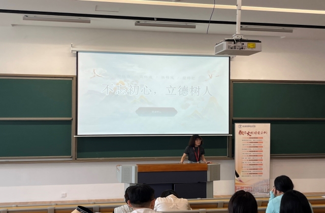 人文社科系新进教师章鑫旖作为新教师代表发言。章老师认为,作为新教师,应更加严格要求自己,做好本职工作,教书育人,爱岗敬业,提高教学水平,丰富教学经验。要做有理想信念、有道德情操、有扎实学识、有仁爱之心的“四有好老师”。