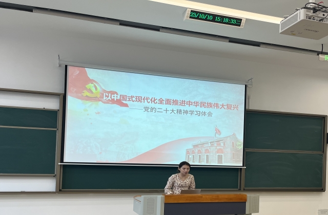 10月10日下午,人文社科系党支部在勤学楼105教室组织开展了关于党的二十大精神的集中学习,本次学习由艺术教研室曹青云老师主讲,人文社科系全体教职工参加。