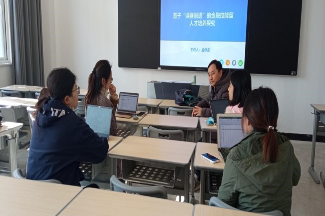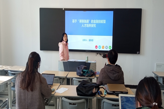 首先,孟秋彤老师介绍了“课赛融通”的内涵,并指出应用“课赛融通”展开教学改革,需要专业课程教师以专业技能竞赛为基础,深入分析竞赛中涉及的金融理论知识和实践技能,优化课程教学内容,进而有效达成实践能力培养目标。通过将技能竞赛赛题内容转化为金融专业课程的实训项目内容,将内容和金融行业岗位实际工作内容相联系,并借鉴职业技能竞赛完成课程考核机制、提高对学生实践能力的考核,从而提高人才培养质量。