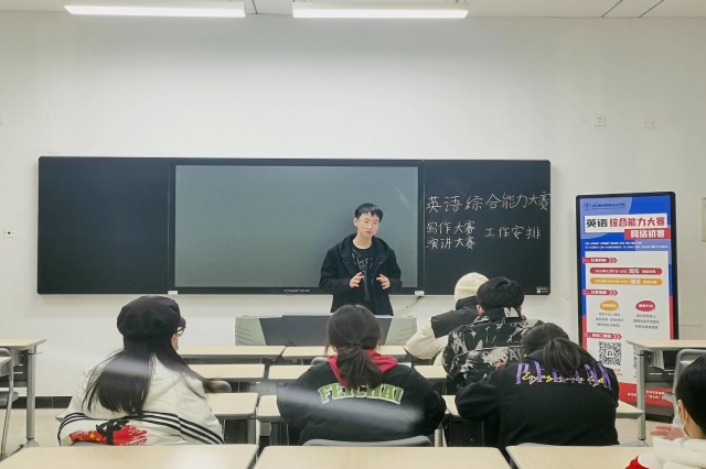 为深化高职高专英语教学改革,落实立德树人根本任务,推动“三进”工作纵深发展,推进有家国情怀、有全球视野、有专业本领的高水平国际化人才培养,为青年学子搭建理解中国、沟通世界的桥梁,提供深入思考、自信表达的平台,帮助学生增长见识、开拓视野、磨砺意志,成为时代需要、国家需要、行业需要的高素质“外国语”“中国心”人才,结合《学院技能竞赛三年行动计划》和“六个一行动计划”,人文社科系英语教研室依托英语第二课堂“蓝岛英”英语角于20231114下午6点在思学楼108开展了英语综合能力写作网络初赛的跟进及演讲网络初赛启动工作。
