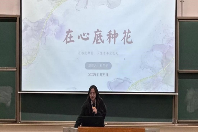 孙熙瑶学姐以“心里种花,人生才不会荒芜”为主题,分享了她的学习经验,分别从人生经历、成绩、荣誉、志愿活动等方面进行分享,讲解了在大学生活中不要做碌碌无为、甘愿平庸的人。作为新时代新青年要积极参加实践活动,从活动中积累经验,在参加活动取得失败时,不要对自己进行否定,因为成长过程是充满荆棘的,但当你勇于提升、突破自己时,这将是一场意义非凡的旅途。