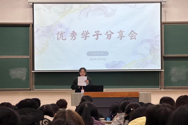 为了帮助同学们提高学习效率和质量,掌握更多的知识和技能,引领同学们向先进典型学习,使同学们更好地认识自己,明确目标,更好地规划自己大学生活,人文社科系学生会于2023年11月23日下午5点30分在勤学楼104举行优秀学子分享会。本次分享会由人文社科系团总支兼职副书记、人文社科系团总支组织部副部长孙熙瑶和校学生代表委员会委员、国际文化社社长刘哲凯担任主讲人,人文社科系学生会副主席马绍华担任主持人,一百五十余名同学参加此次分享会。