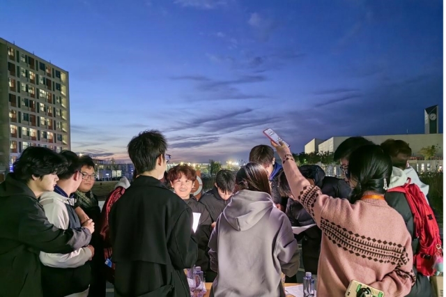 下午4点,竞赛答题的现场宛如一座思维的战场,在宿舍楼下,金黄的夕阳投下温暖的光辉,为竞技的舞台披上一层神秘而庄重的外衣。在答题的过程中,同学们头脑风暴般的思维碰撞,仿佛点燃了智慧的火花。有人认真思考着每一个问题,有人快速书写着每一个答案,现场弥漫着浓厚的法治氛围。天空逐渐失去了白昼的色彩,暮色弥漫而至。金黄的太阳渐行渐远,将余晖撒在西边的云层上,点缀出一片橙红的晚霞。随着太阳的沉没,天空变得愈发深邃,星星悄然点亮了黑夜的帷幕。同学们拿出手机打开手电筒为答题的同学照亮题目,展现了人文社科系独特的人文情怀。答题结束后,为同学们赠送礼品,礼品不仅是奖励,更是对学子们智慧和努力的认可,使整个竞答现场充满了渴望和热情。