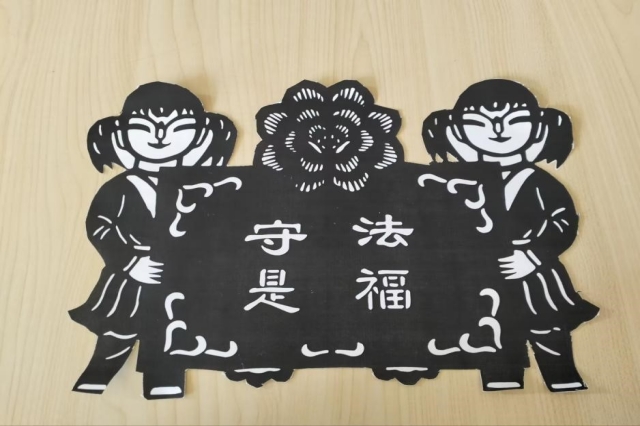 当日,12点40分在博学楼101进行了剪纸活动与宣誓活动,在剪纸活动中,工作人员为同学们发放剪纸的材料,同学们专注而灵巧地运用剪刀,犹如法治的雕琢,每一次剪裁都是对法治的一种诠释。他们用手中的工具,在纸张上舞动,剪出线条交错、错落有致的图案,仿佛将法治理念娓娓道来。剪纸的动作如法治之手,在平静的纸面上刻画出法治精髓的深远和博大。每一刀每一剪,都是对法治文化的细致呈现,展现了同学们对法治的独到理解和深深的情感投入。而在宣誓的时刻,学子们肃穆而庄重,站在一起,目光坚定。他们高举右手,掌心紧握着对法治的信仰。宣誓词铿锵有力,每个字都仿佛是一份庄严的承诺,融入了每个学子心中。在这庄严的氛围中,同学们的眼神里闪烁着对法治的崇敬和对未来的执着。宣誓的动作仿佛定格在时间的画卷中,成为每位学子对法治担负责任的开始,也是对共建和谐校园的郑重宣誓。