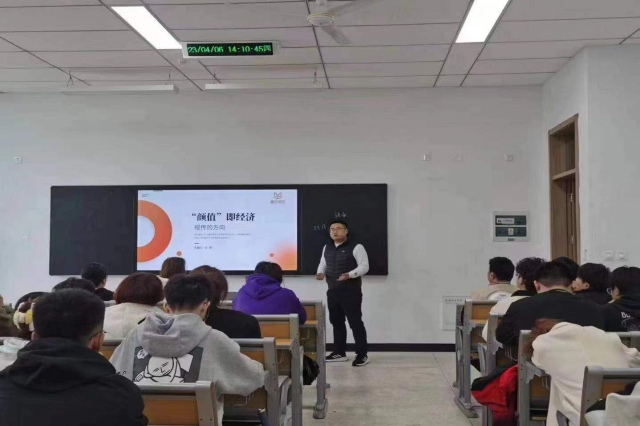 2023年4月6日,视觉传达设计专业举办了就业指导讲座,邀请了南京粹盟装饰公司有限公司的执行董事汪勇先生作为特邀嘉宾,以“颜值即经济”为主题,为视觉传达设计专业的同学介绍就业方向。